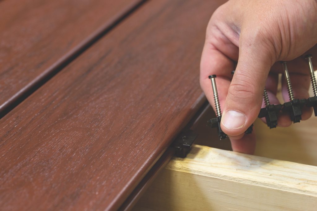 When you’re installing a new composite deck, you want guests to notice its beautiful color and finish, not a bunch of ugly screws. That’s where hidden deck fasteners come in. They secure your decking to the substructure from the sides, so the faces of your deck boards remain beautiful. While there are products that work with solid edge deck boards, most hidden deck fastener systems are designed for use with grooved edge deck boards, so that’s what we’ll cover in this post.
